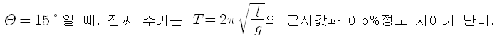 진폭이 작은 경우, 진자의 주기는 진폭과 거의 무관하다. 위의 식