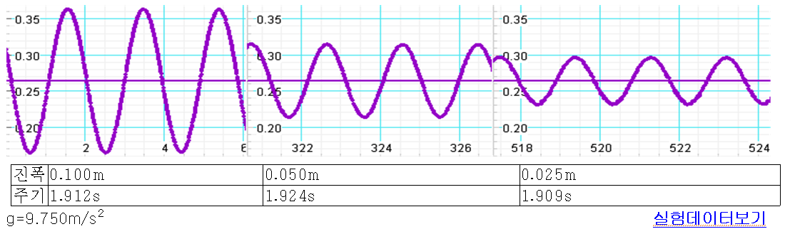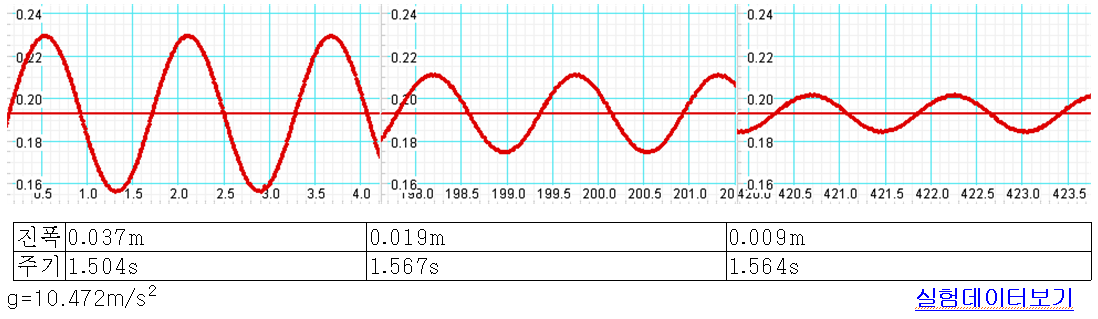 5) 주기를 이용하여 중력가속도g를 구한다.