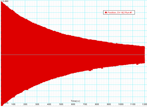 2) 진폭의 최대값이 처음의 절반이 되는 시간을 찾는다. 또한, 1/4이 되는 시간도 찾는다. 두 값의 기하평균값을 구하여 진폭의 반감기를 측정한다.