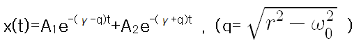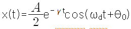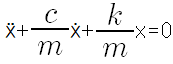 평형점부터의 변위를 x라 하면 복원력은 -kx이고 제동력은 -cẋ이다. c는 비례상수이다. 그러므로 운동에 관한 미분방정식은 mẍ+cẋ+kx=0 이다.
