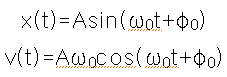 단조화 진동자에서 시간의 함수로 위치와 속도는 다음과 같다.