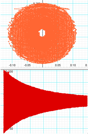 앞의 속도시간 그래프와 같은 시간의 x-t그래프 이다. 역시 끝부분에 약간의 요철을 발견할 수 있다.