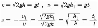 여기에서 다시 튀어 오르는 높이를 구하면 h1=e²h 가 된다. 또 그 때까지 걸리는 시간 t1=et 가 된다