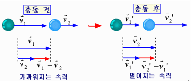 (단. 여기서 말하는 가까워지는 속력과 멀어지는 속력은 상대속도를 말한다. 가까워지는 속력은 충돌 전의
