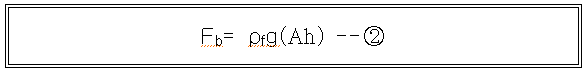 잠긴 물체의 체적이 단면적 A, 잠긴 높이 h의 곱으로 표시 된다면 부력은 다음과 같이 나타낼 수 있다.