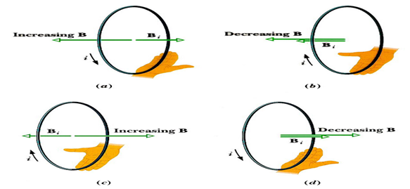 - 유도전류의 방향 : 자기력선 수의 변화를 줄이도록 흐름.