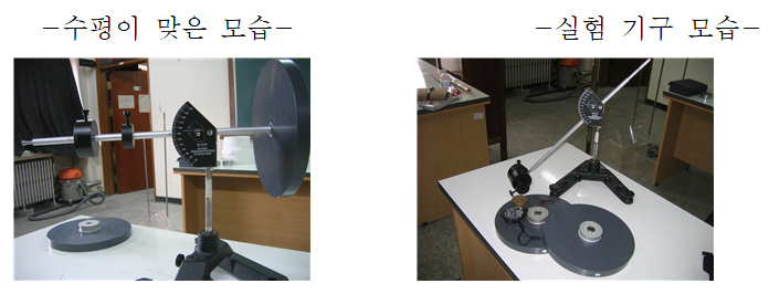 ② 회전판 끝에 추가질량을 달고 나사로 단단히 조인다. 두 회전판은 한꺼번에 같은