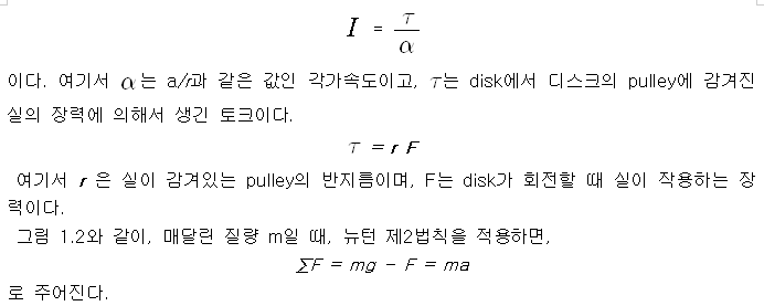 ① 운동 마찰을 이겨낼 질량을 찾기 위해 pulley에 적당한 질량을 걸어 두어 속력이 일정하게 만든다. 이 마찰질량을 기록한다.