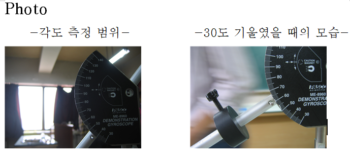 ③ 자이로스코프를 세차운동 시키고 2회전 할 때의 시간을 재서 세차율을 알 수 있다.