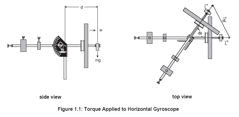 지지대 끝에 질량을 매달면 자이로스코프에 토크가 작용한다.