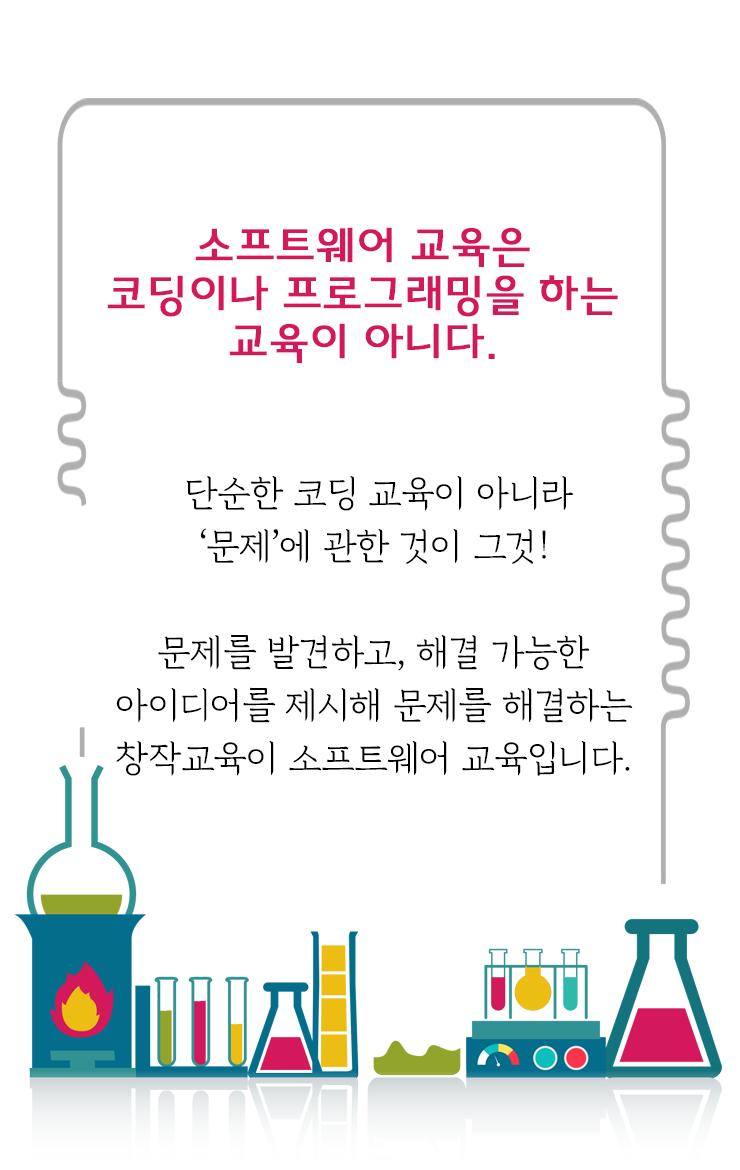 과거 청소년을 대상으로 한 소프트웨어(SW) 교육은 코딩(coding) 중심 교육이었습니다. 그러다 보니 매우 어려운 프로그래밍 언어를 배워야만 했지요. 그러나, 소프트웨어 교육에서 '코딩'은 하나의 수단일 뿐이지 가장 중요한 부분은 아니라는 것이 최근의 여론입니다.