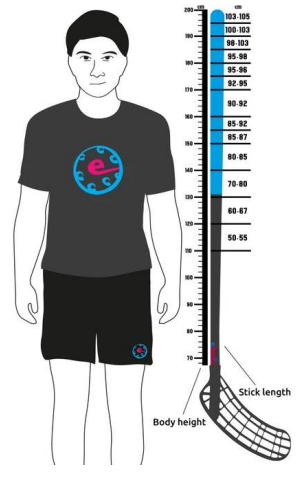 주요 단계 중 하나는 올바른 길이를 선택하는 것입니다. 플로어 볼 스틱의 길이를 선택하는 방법에 대한 자세한 내용을 볼 수 있습니다. 이미지를 참고하세요. 키가 175cm라면 95-96cm의 스틱을 선택하면 됩니다. 전체 길이가 배꼽 위 1인치(약 3-5cm) 정도 올라오는 것이 적당합니다.