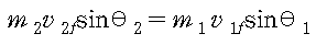 2차원 충돌의 경우에도 운동량 보존 법칙은 각 성분에 대해서도 성립한다. 위의 그림에서