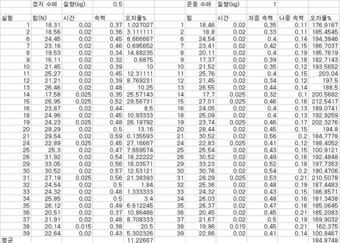 번 측정하여 평균값을 정한다. (일정한 높이에서 내려가므로 앞으로의 실험에서 속도는
